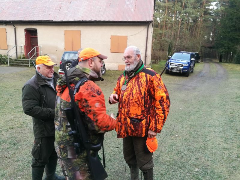 Dziś kolejne spotkanie. Tym razem z naszymi dobrymi przyjaciółmi z Dani. Pogoda dopisała, św. Hubert łaskawy, wszyscy zadowoleni. To moje ostatnie w tym roku polowanie zbiorowe. Był to wspaniały okres spotkań z koleżankami i kolegami z KŁ Orlik. Wszystkim prowadzącym, organizatorom, myśliwym, naganiaczon, psom dziękuję za wspólnie spędzony czas. Darz BÓR